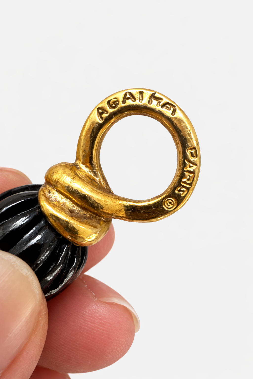 Ce pendentif Agatha Made in France séduit par son design sculptural associant métal doré et perle noire nervurée. Une pièce intemporelle issue du luxe vintage, sélectionnée pour une mode seconde main premium attentive aux détails et à la qualité. Un bijou minimaliste qui s’inscrit naturellement dans une garde-robe durable et une démarche de mode responsable.